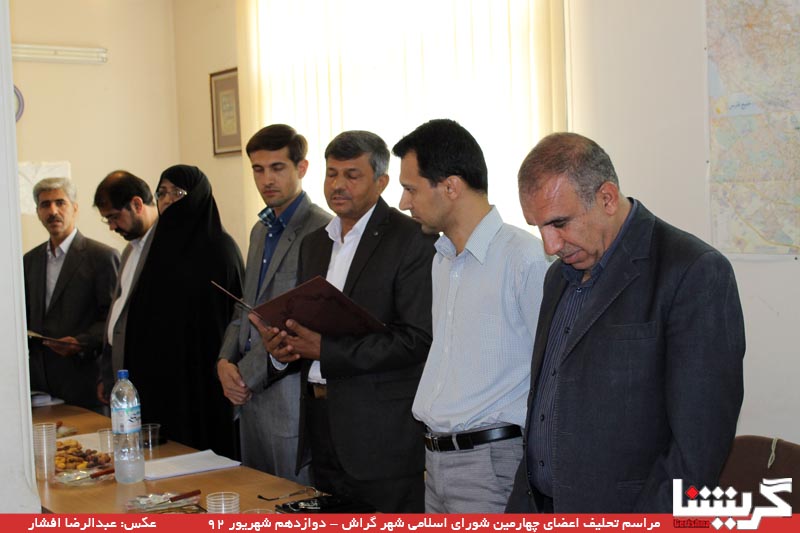 گریشنا: اعضای چهارمین شورای اسلامی شهر گراش دیروز سهشنبه دوازدهم شهریور در اولین جلسهی رسمی شورا و در حضور فرماندار، امام جمعه، معاون فرماندار، فرمانده انتظامی شهرستان گراش، اعضای شورای اسلامی سوم، هیات برگزاری و نظارت بر انتخابات شورای چهارم و جمعی از معتمدین و خبرنگاران سوگند خوردند.